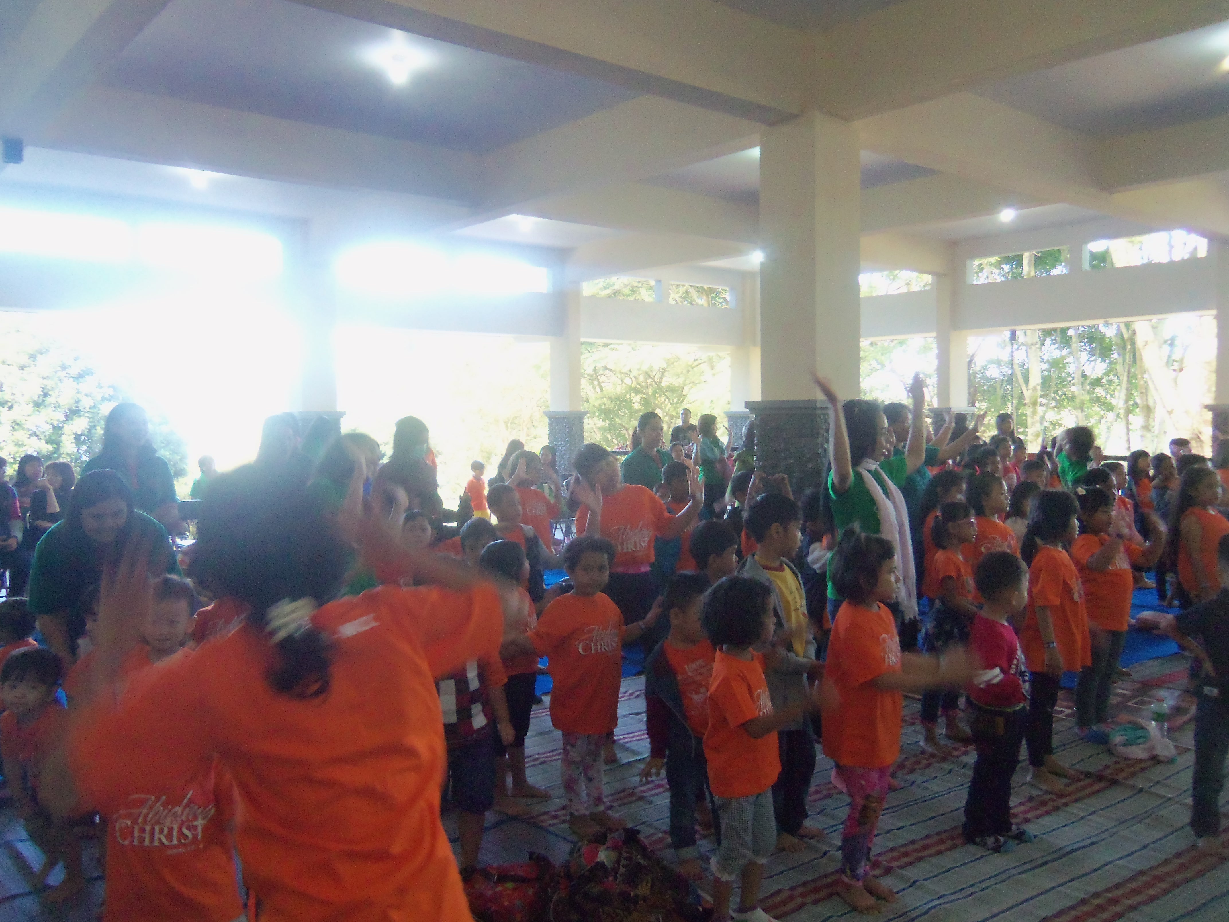 - Sebelum doa pembukaan, Pembicara melatih dari podium, gunakan gerakan tangan seperti dirigen, bagaimana kelompok 1 yel yelnya, dan beri tanda dengan tangan kapan harus berhenti. Jika tangan saya naik, kelompok yang ditunjuk harus berdiri, membunyikan musik dan mengibarkan bendera, tetapi bila tangan saya turun, mereka harus duduk dan bendera diletakkan di lantai, lalu musik sudah tidak boleh bunyi lagi. Jika kelompok tersebut belum maksimal, boleh di ulang beberapa kali. Kini giliran kelompok 2 dst. Kalau saya pada saat itu menggunakan bantuan pemain Cajon untuk menemani pemain musik dalam kelompok, kapan memulai dan kapan berhenti. Dengan demikian, anak anak tahu kapan berhentinya, kalau melihat tangan saya sekaligus mendengar berhentinya bunyi Cajon. Jadi secara visual terpimpin, secara audio juga terpimpin.