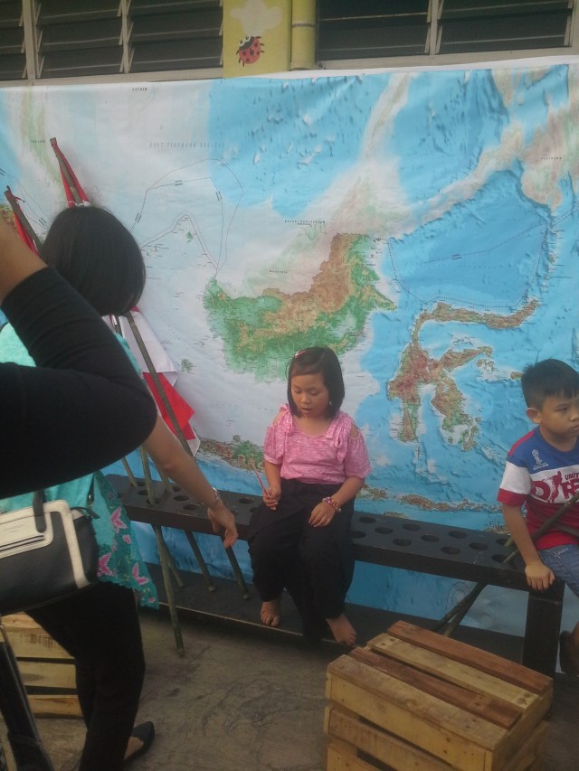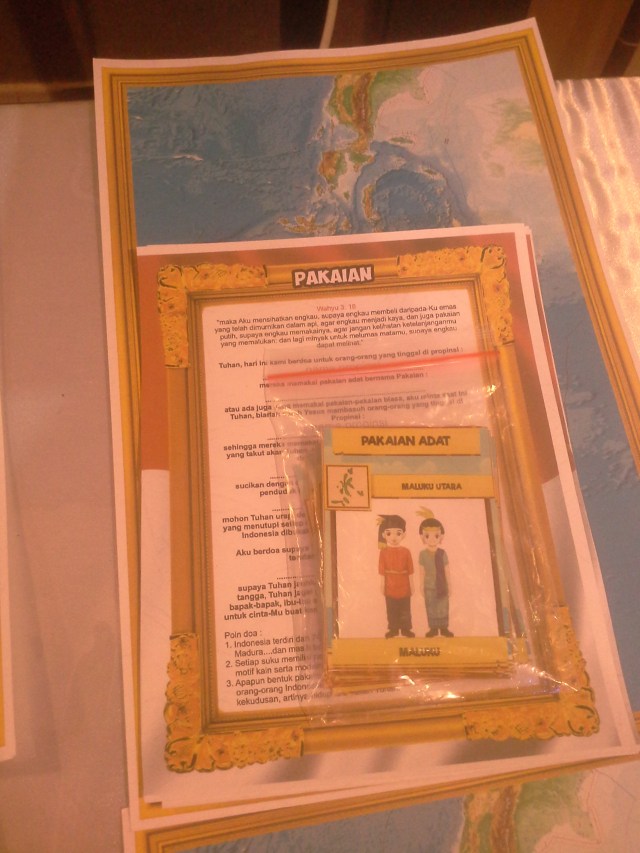 - Setelah selesai berdoa, kartu ditaruh di propensi masing-masing pada peta Indonesia berukuran raksasa