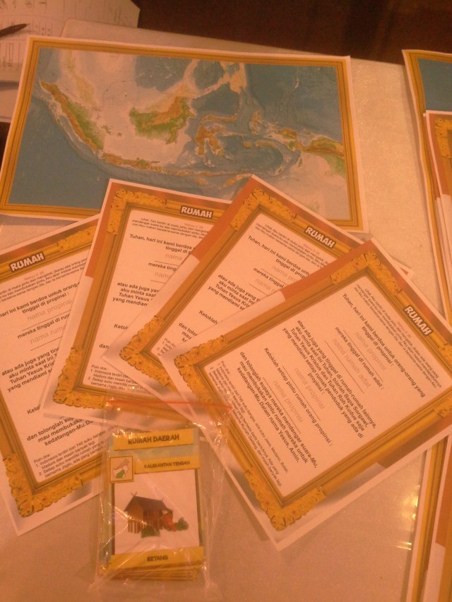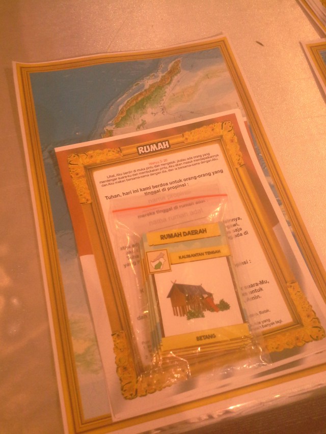 - Nah, adik-adik, hari ini kita akan berdoa untuk setiap propensi yang namanya tertulis dalam kartu Rumah Adat Daerah di Indonesia ini