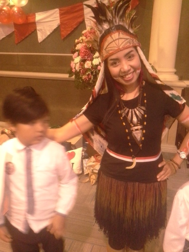 mereka memakai alat musik tradisional bernama Gendang Dayak