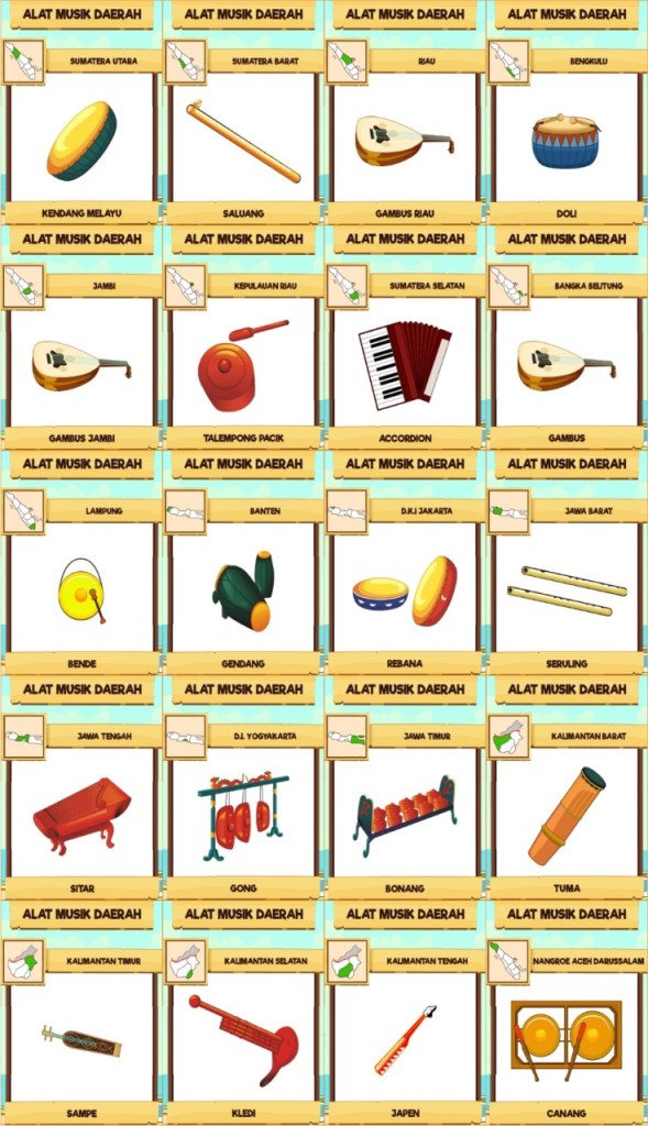 - Nah adik, adik hari ini kita akan mendoakan setiap provinsi yang namanya tertulis dalam kartu Alat Musik daerah di Indonesia ini