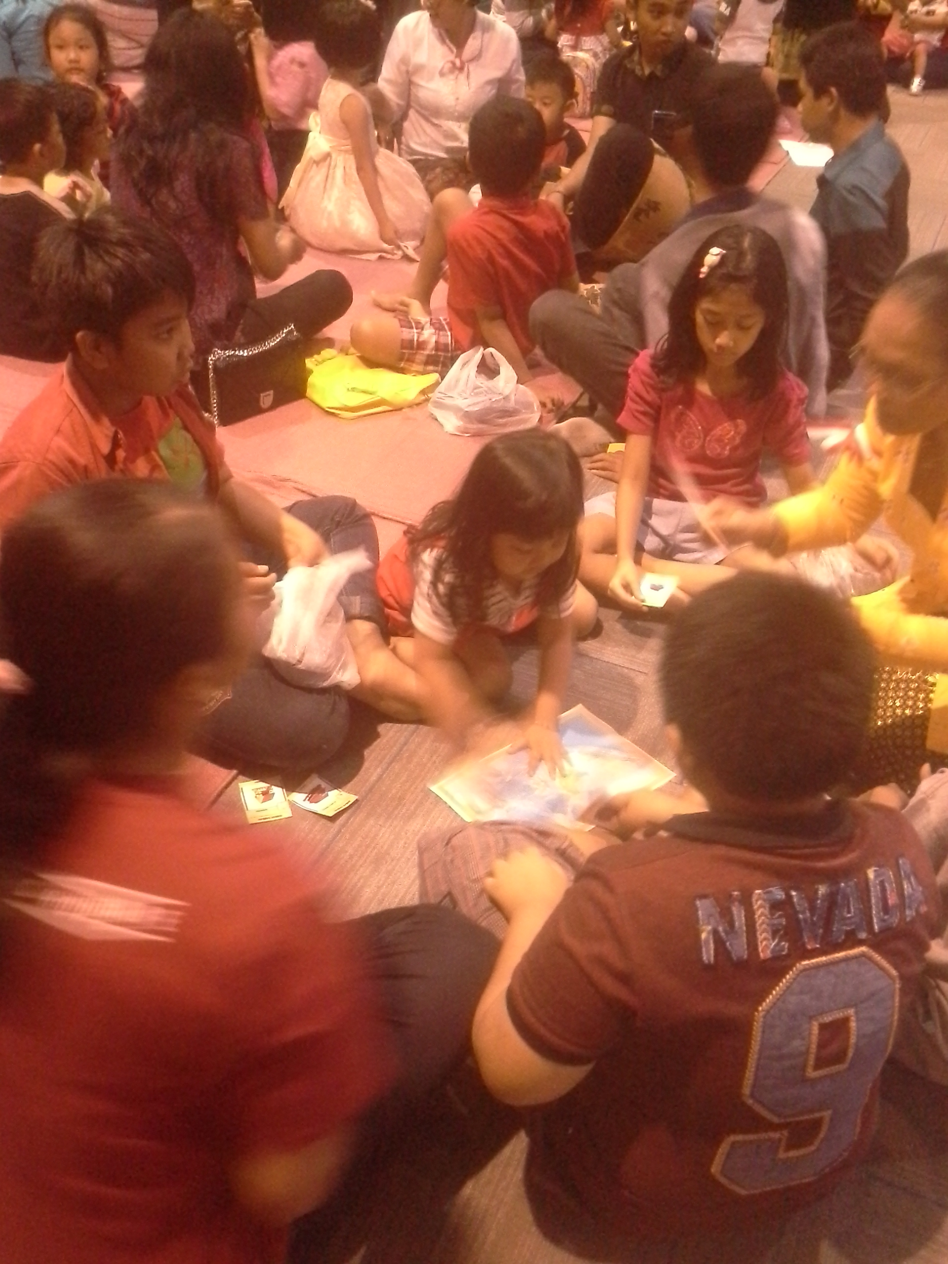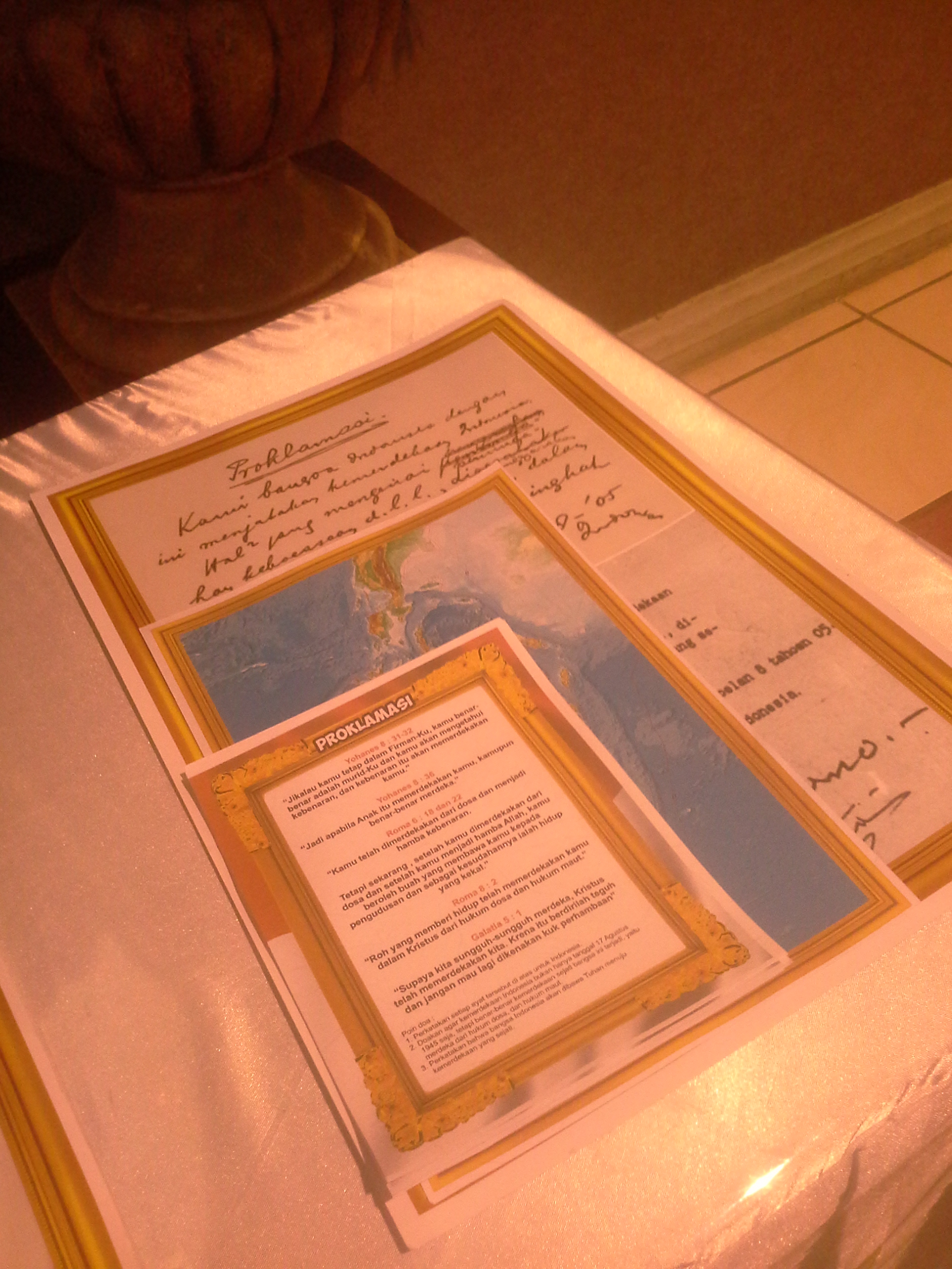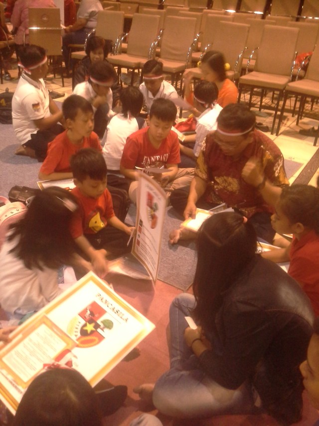 - Setelah selesai berdoa, kartu ditaruh di propensi masing-masing pada peta Indonesia berukuran raksasa