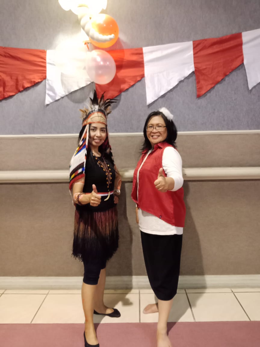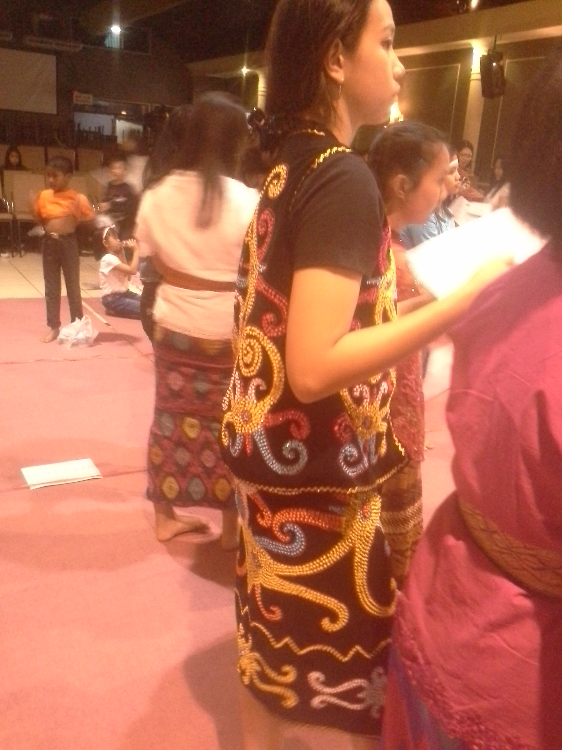 mereka memakai alat musik tradisional bernama Gendang Dayak