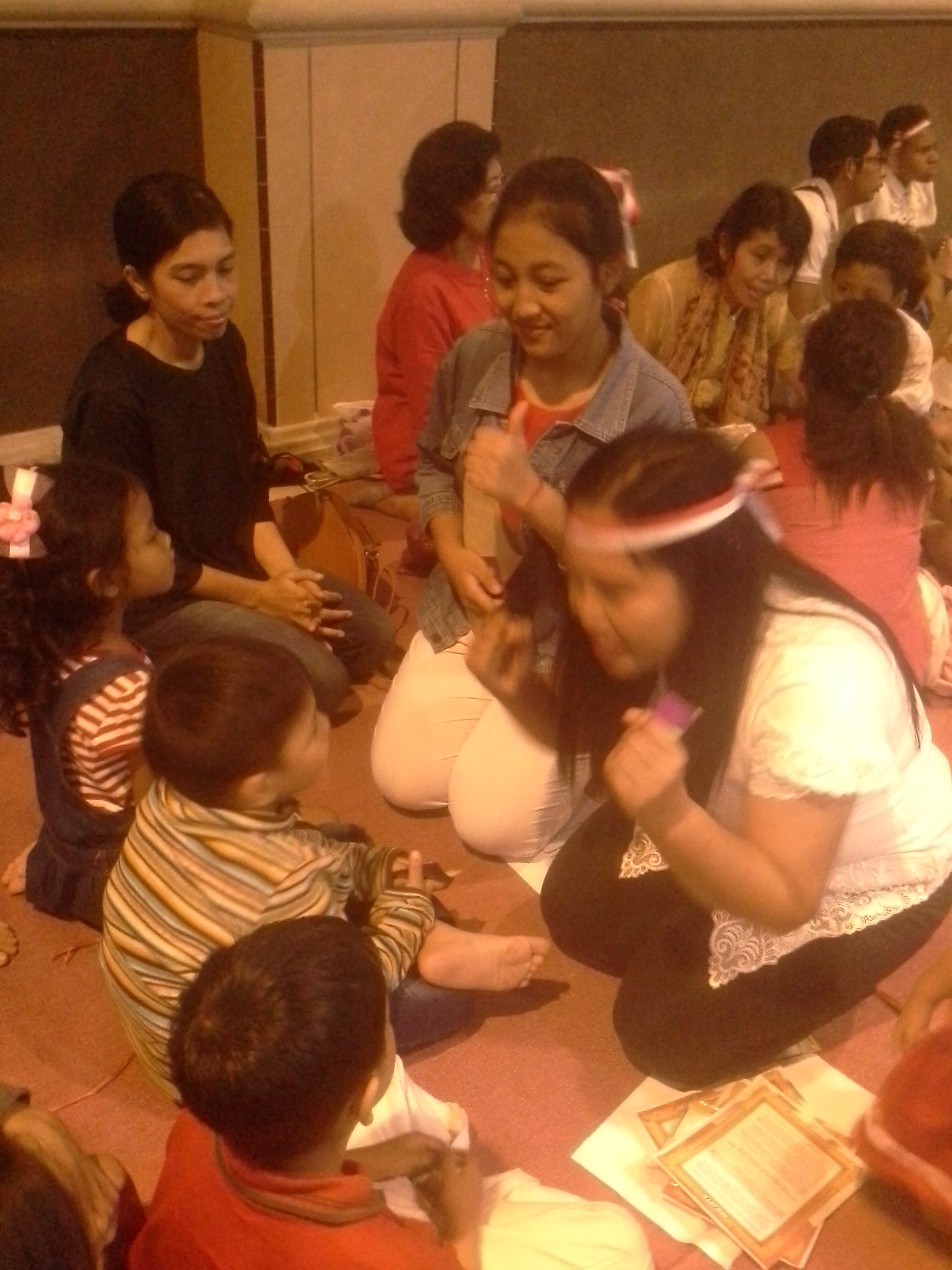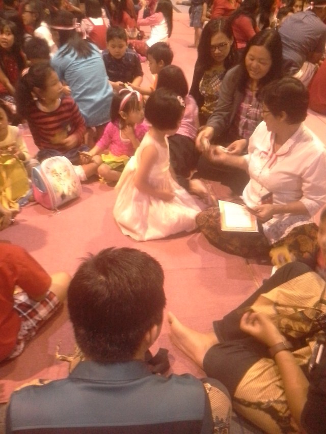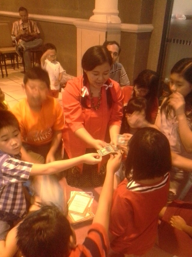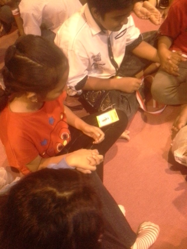Baik, sekarang bisa kita mulai…..angkat kartunya ke atas, dan ikuti doa kakak…