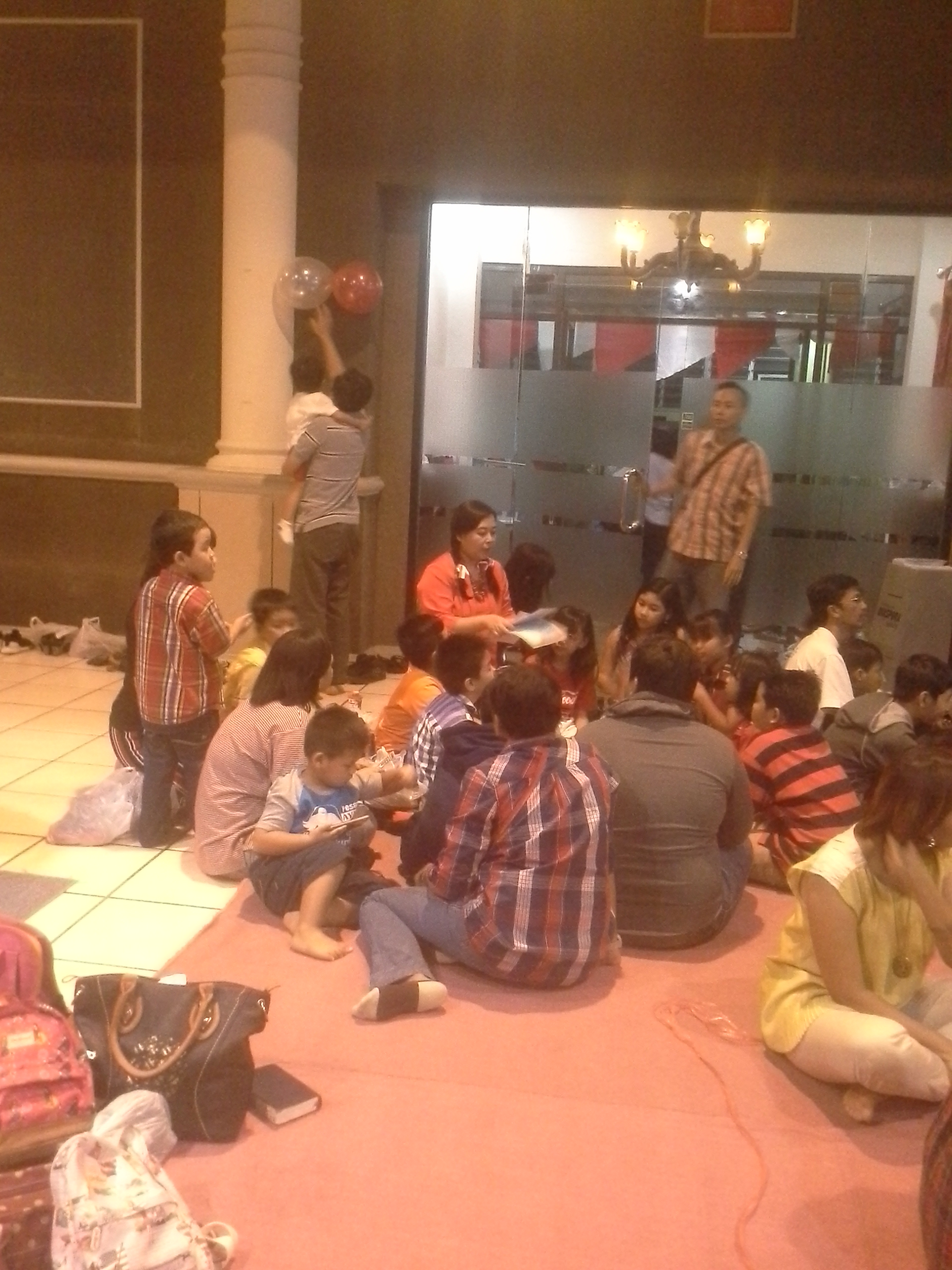 - 31 anak berkumpul dalam 2 kelompok , masing masing kelompok berjumlah 10 anak dipandu oleh 3 GURU SEKOLAH MINGGU