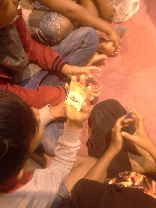 - Kartu harus dipegang anak-anak dan diangkat ke atas.