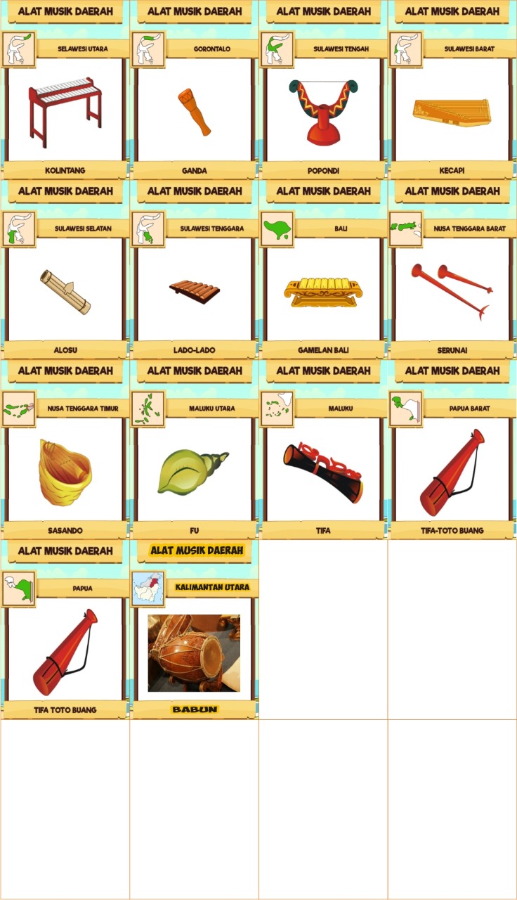 - Nah adik, adik hari ini kita akan mendoakan setiap provinsi yang namanya tertulis dalam kartu Alat Musik daerah di Indonesia ini
