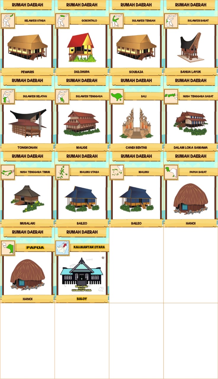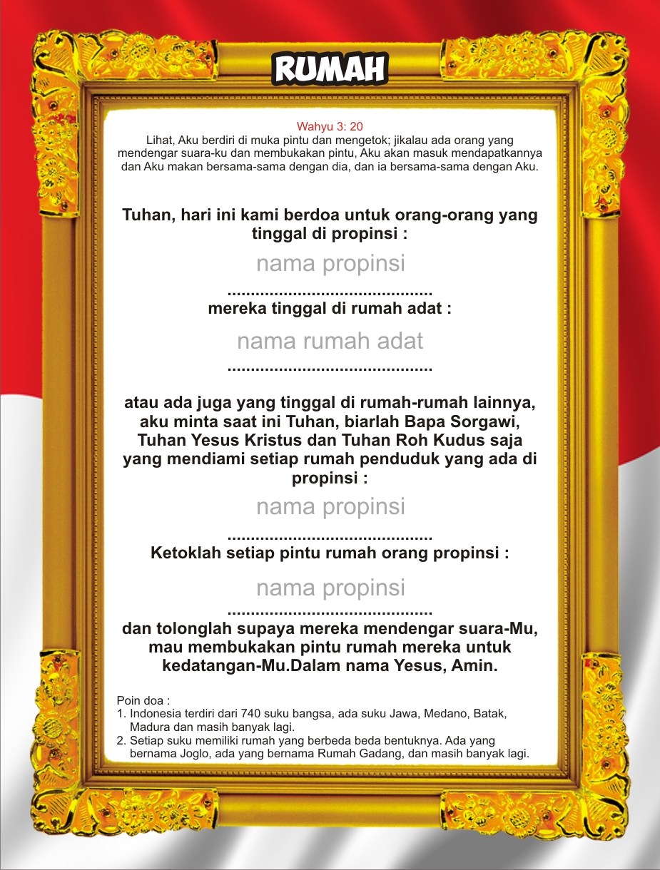 - Nah, adik-adik, hari ini kita akan berdoa untuk setiap propensi yang namanya tertulis dalam kartu Rumah Adat Daerah di Indonesia ini