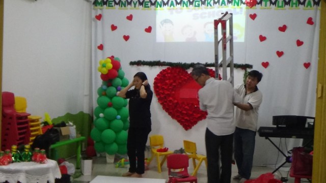 Suasana Persiapan KKR Natal anak, Seminar Guru Sekolah Minggu, dan juga Ibadah Raya di GBI Hosana, Jakarta Pusat.
