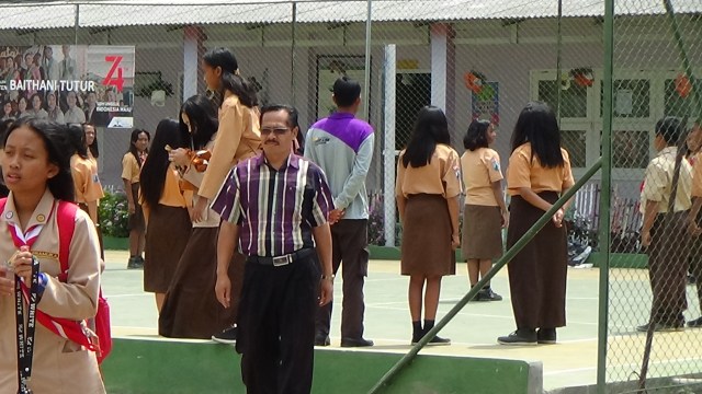 Jika ada anak yang berani maju, maka bingkai akan dipegangkan oleh 2 orang guru dari panitia.