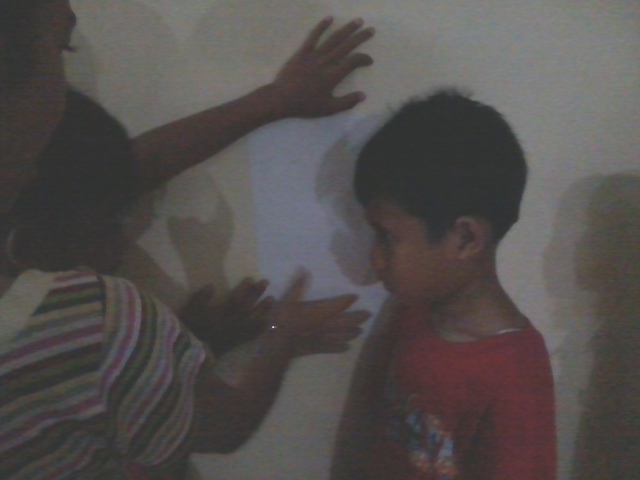 - Ayah menjadi CAKRAWALA ( berdiri tegak, dan bentangkan tangan sampai lurus). Boleh memakai selimut warna biru, atau memakai kapas kapas.