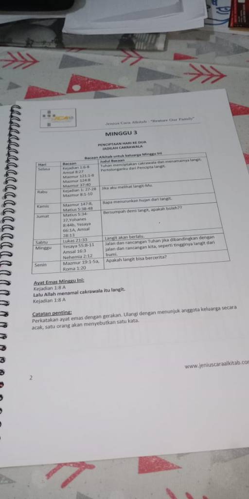 | Hari ke-20 | Kejadian 1:8A, Yesaya 55:8-11
