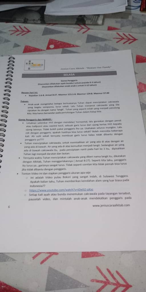 | Hari ke-19 | Masing-masing anak 1 buah | Alkitab | |