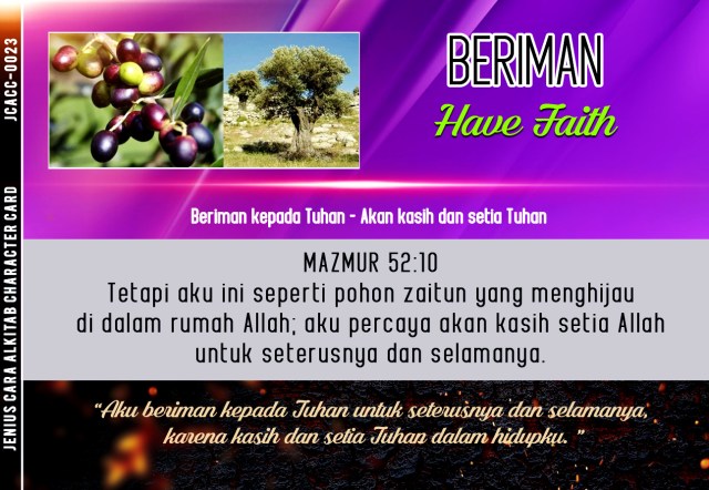 - Hari ini kita mempelajari salah satu pohon yang terkenal dibahas dalam Alkitab. Tuhan ingin kita menjadi seperti pohon zaitun yang subur, yang bisa bertahan lama karena akarnya yang dalam. Akar adalah lambang daripada iman. Tuhan ingin kita beriman kepadaNya begitu dalam, bagaikan akar pohon yang bertumbuh dalam di jauh di dalam tanah.