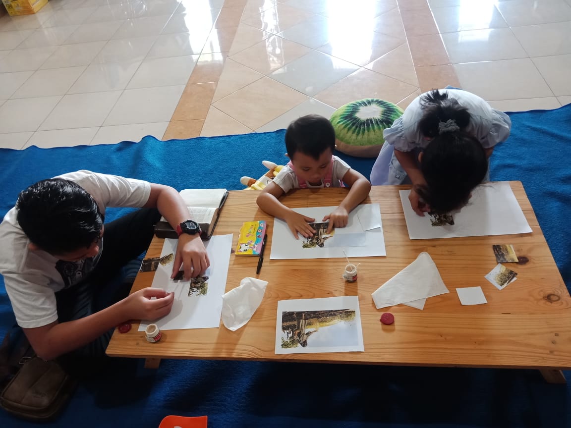 - Memotong gambar menjadi 4 keping ( untuk usia 6-8 tahun)