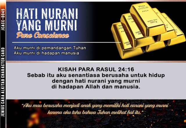 Tuhan, jadikan aku anak perempuan yang memiliki hati nurani yang murni, tidak jahat dan keji, tetapi selalu mengasihi, dan berbelas kasihan, di dalam nama Yesus, Amin.