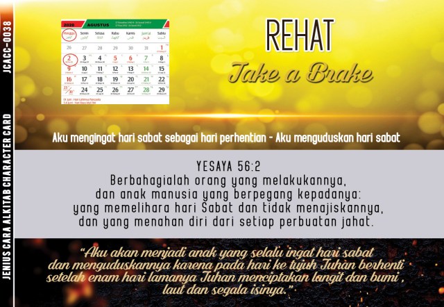 - Demikian juga kita seminggu ini sudah belajar bagaimana menguduskan hari sabat, kita mau beribadah kepada Tuhan pencipta langit dan bumi, Tuhan yang benar, Tuhan Yesus Kristus, Bapa dan Roh Kudus. Kita tidak menyembah berhala-berhala yang bukan Allah yang benar.