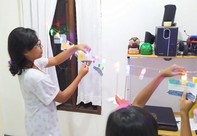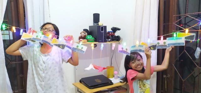 - Minta kelompok 1 ( misalnya Ayah dengan kakak) menyusun kembali urutan gambar yang telah diacak pada jemuran secara urut hari-hari penciptaan, tidak boleh melihat Alkitab, hitung waktunya, berapa lama/ berapa detik. Setelah itu, acak lagi untuk bergantian main dengan kelompok 2, lakukan hal yang sama, kelompok mana tercepat menang.