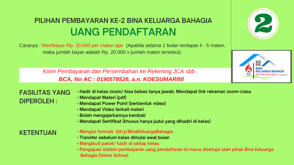 BINA KELUARGA BAHAGIA BULAN APRIL 2021 On April 2, 2021April 9, 2021 By jeniuscaraalkitabdalam Uncategorized Bagikan ini: Klik untuk membagikan di Facebook(Membuka di jendela yang baru) Facebook Klik untuk berbagi di X(Membuka di jendela yang baru) X Suka Memuat... Terkait