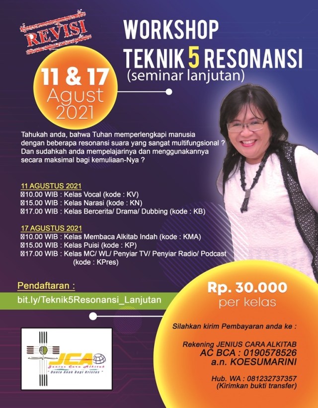 Acara ini mengalami perubahan tanggal terhubung dengan perubahan tanggal merah, jadi pada flyer terdahulu tertera pelaksanaan tanggal 10 dan 17 Agustus 2021, namun telah diralat menjadi pelaksanaan pada tanggal 11 dan 17 Agustus 2021. Mohon perhatiannya.