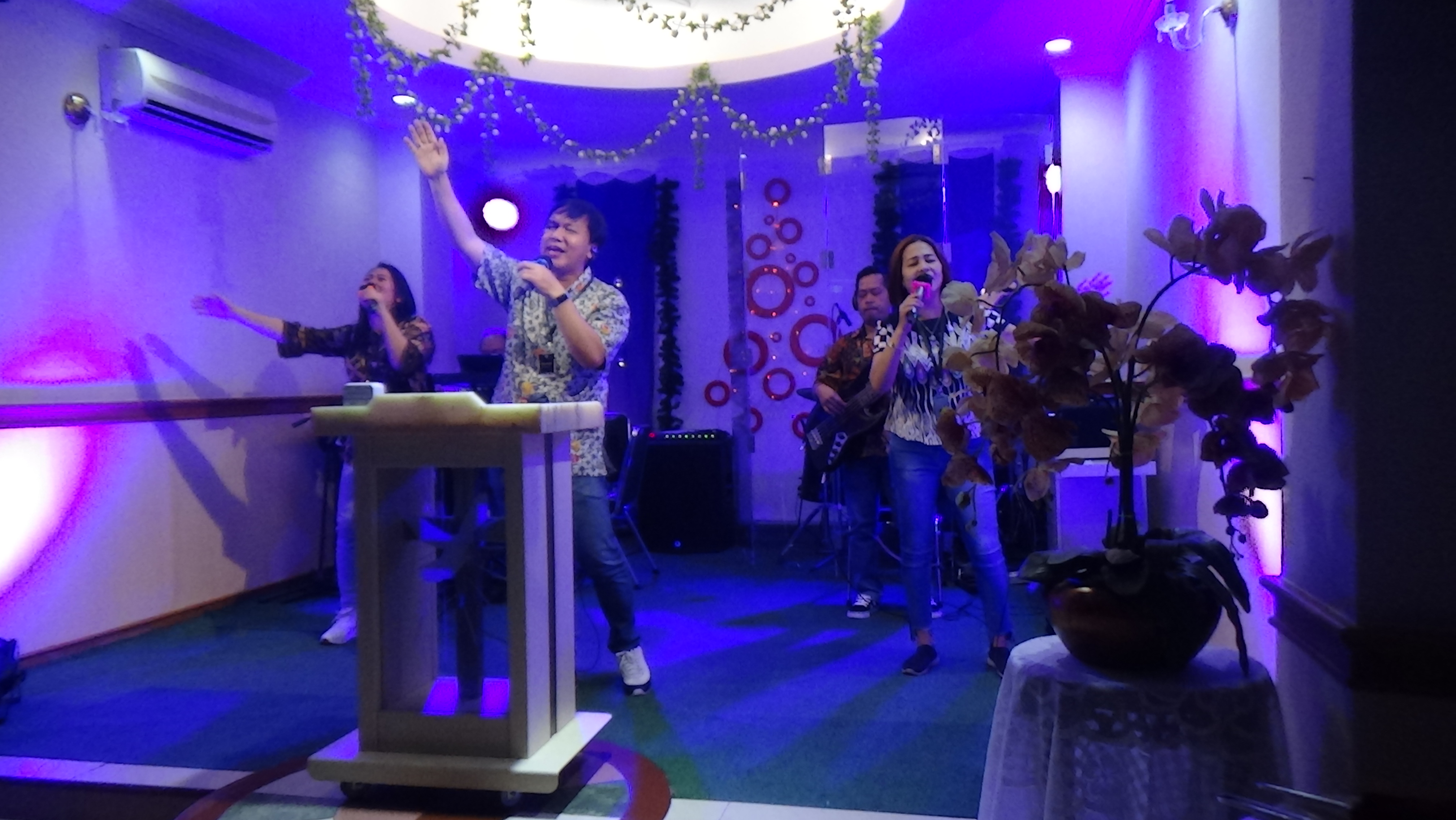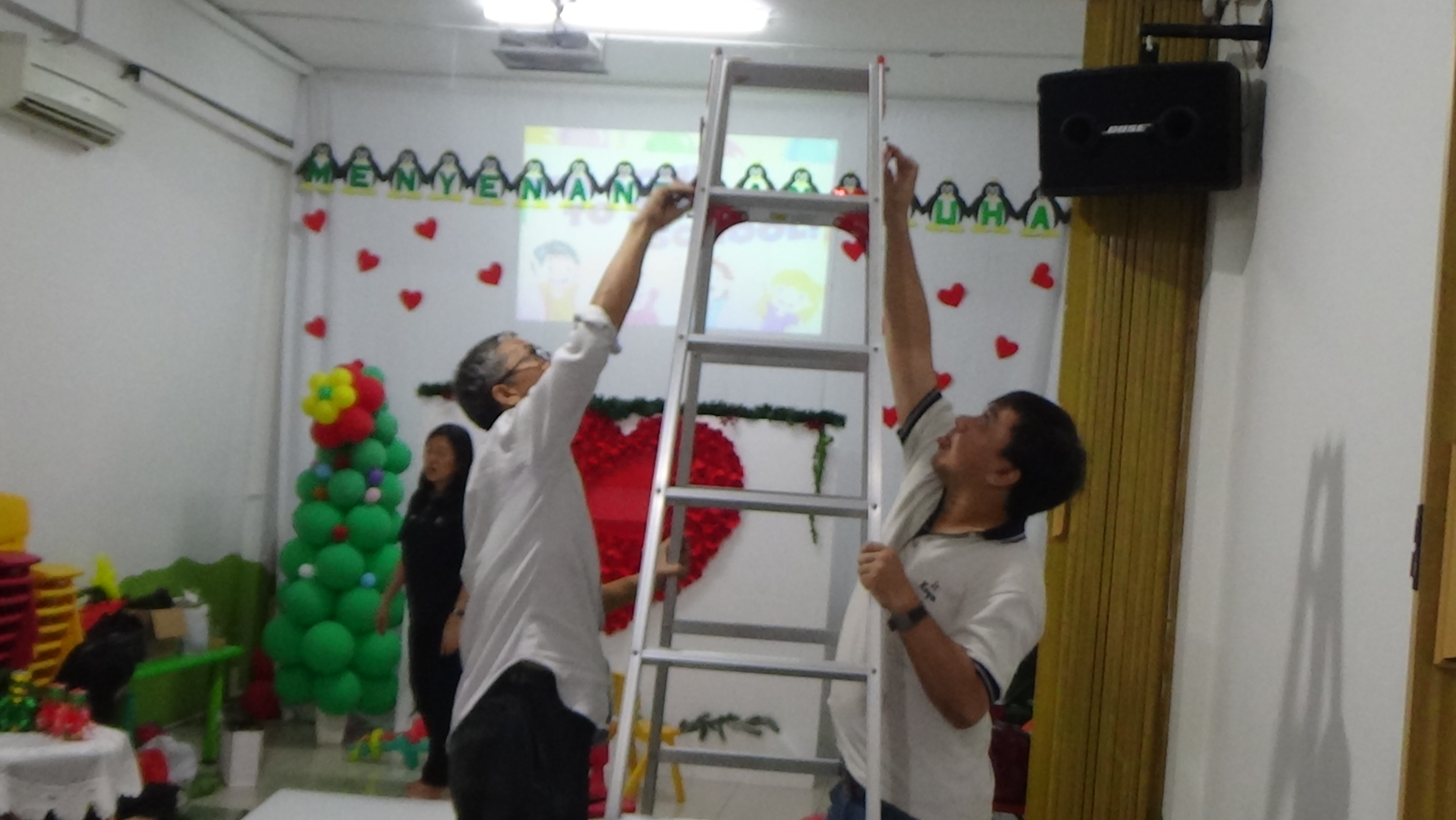 Suasana Persiapan KKR Natal anak, Seminar Guru Sekolah Minggu, dan juga Ibadah Raya di GBI Hosana, Jakarta Pusat.