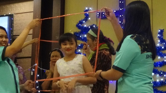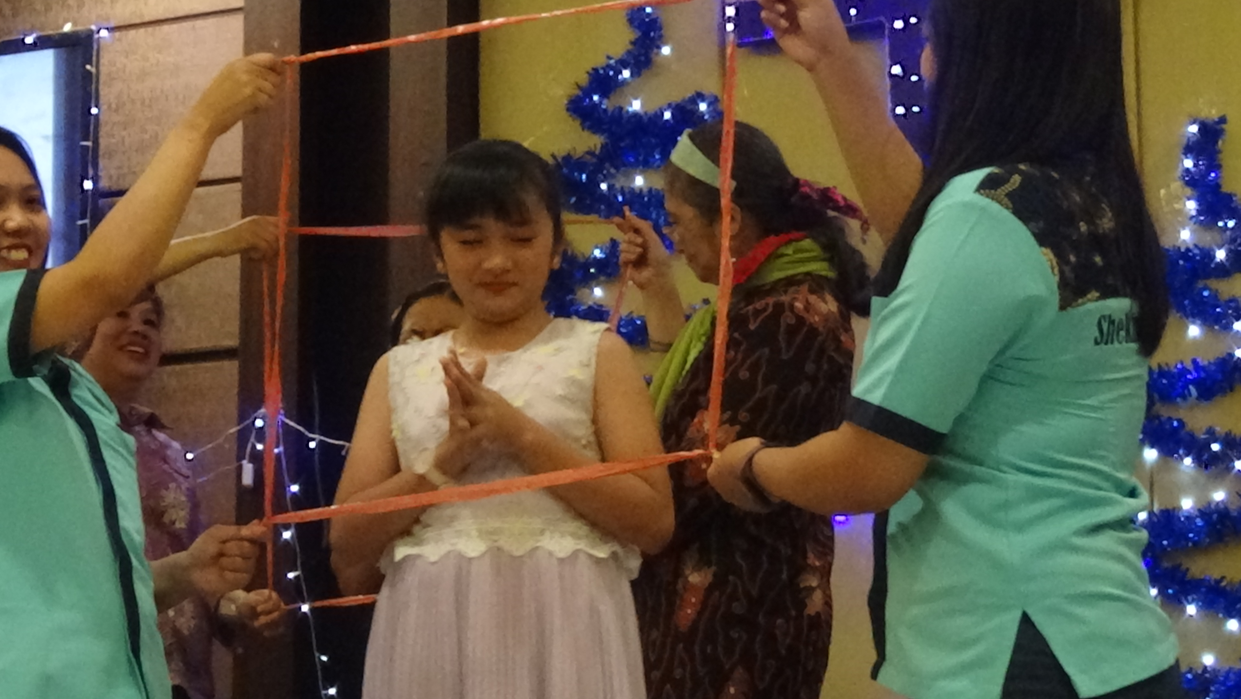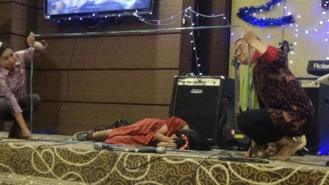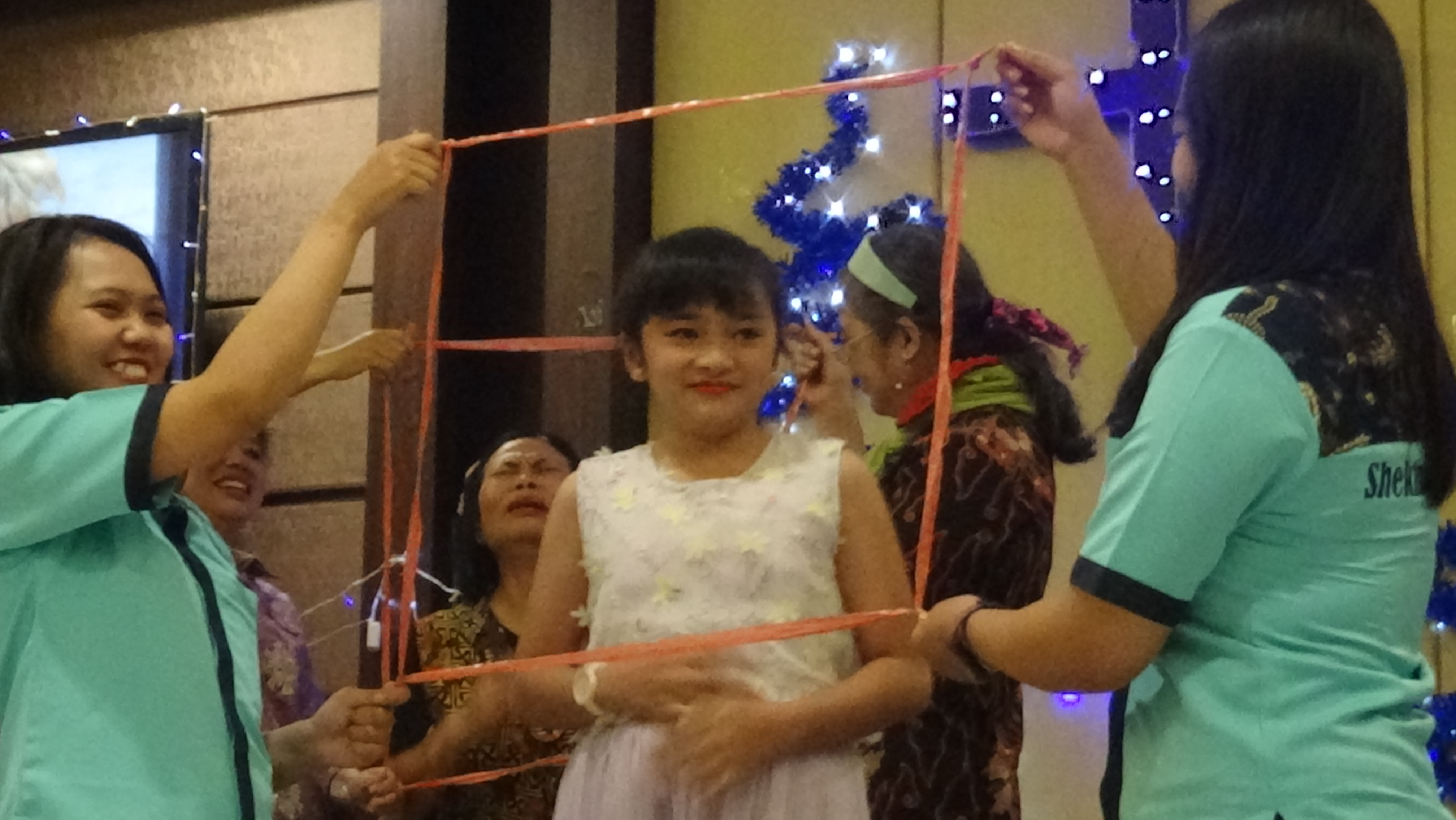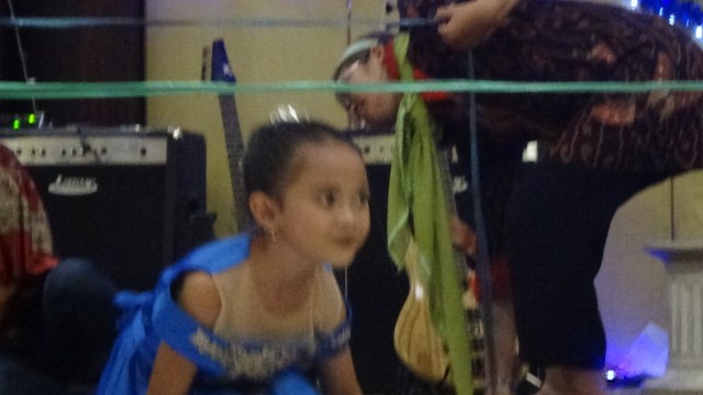 Jika ada anak yang berani maju, maka bingkai akan dipegangkan oleh 2 orang guru dari panitia.