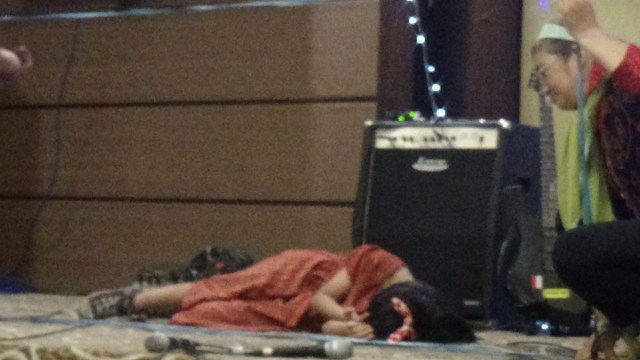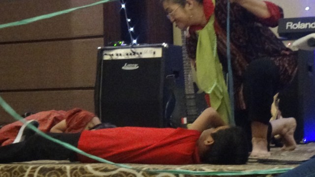 Saat ada kuasa kegelapan , kita tidak perlu takut, karena roh yang ada di dalam kita jauh lebih besar dari roh yang ada di dalam dunia. ( I Yohanes 4:4)- guru menunjukkan gambar anak yang sembuh dari dirasuk setan- mimik tubuh sembuh dari kerasukan setan