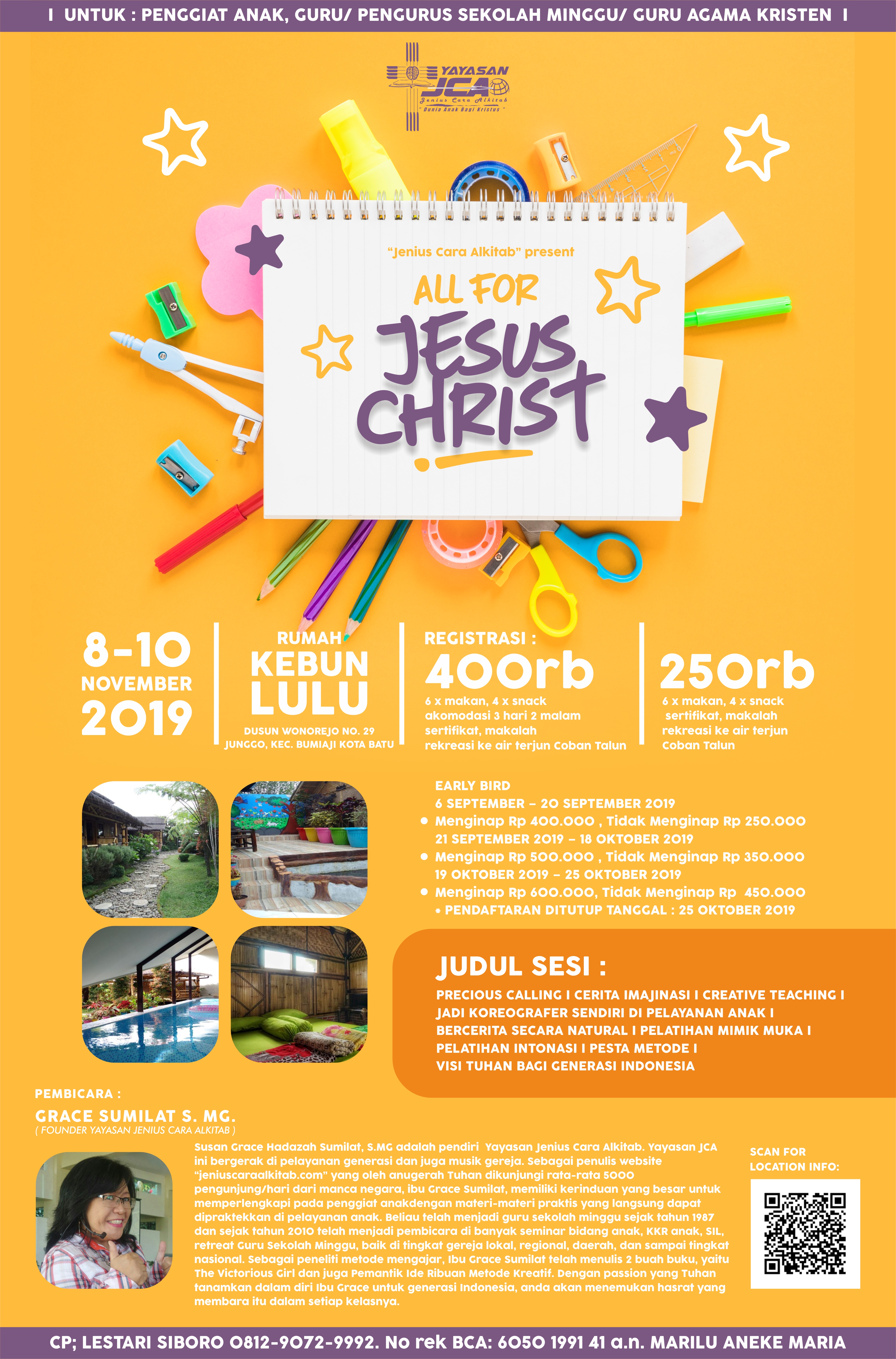 Dalam rangka memperingati 15 tahun Grace Sumilat terjun di Jenius Cara Alkitab Ministry (2010-2015) , berikut adalah profile beliau secara detail yang sengaja dibuat sesuai pengelompokan masing-masing genre pelayanan dan sepak terjang beliau dalam bekerja dan melayani Tuhan, yang kesemuanya itu tentunya adalah karena anugerah Tuhan semata-mata di dalam hidupnya.