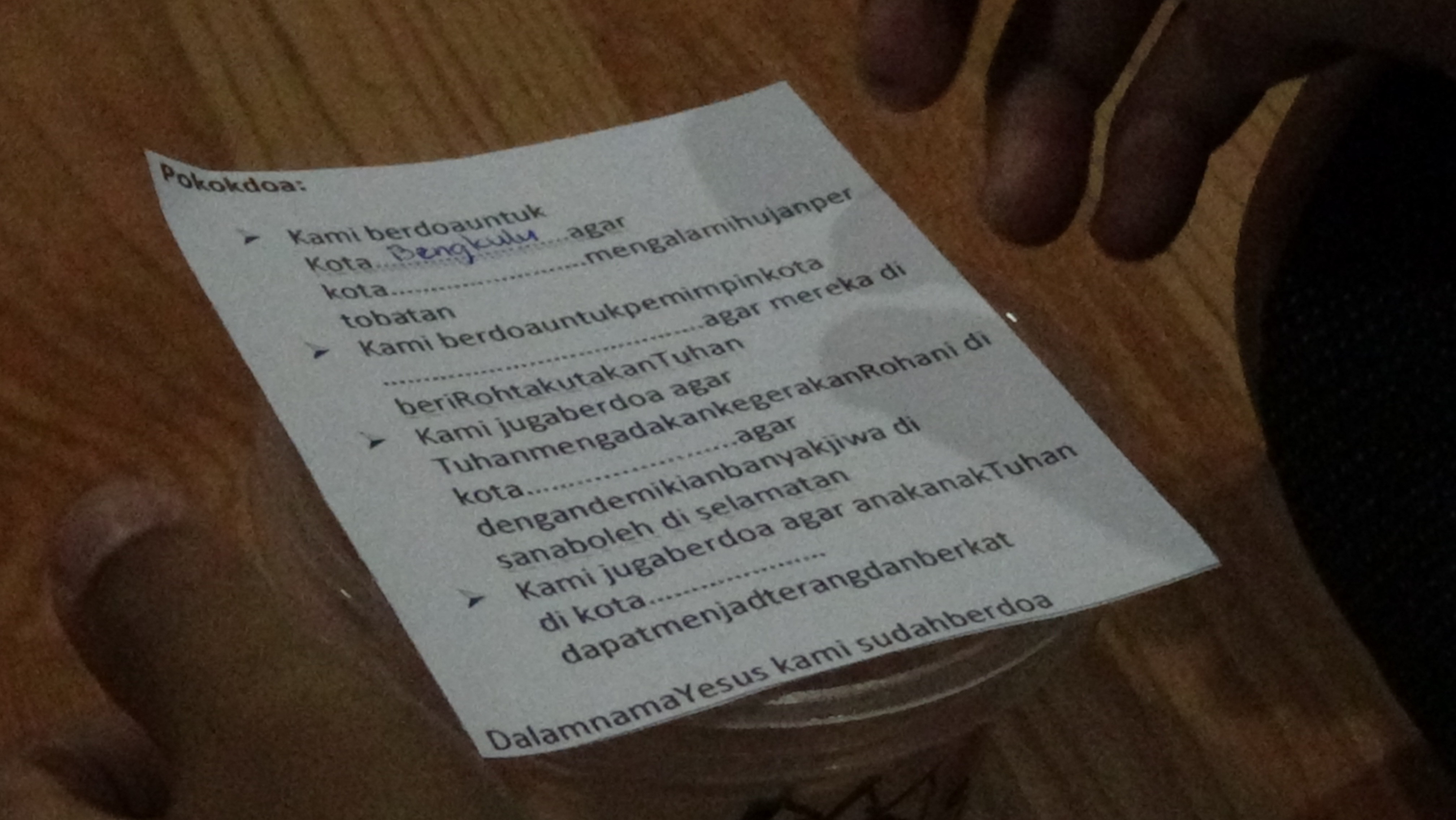 Doakan agar di setiap kota yang kita doakan, yaitu kota……………….ada hujan pertobatan