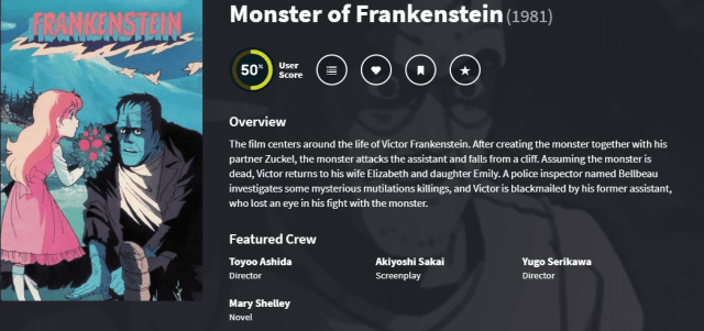 Kyōfu Densetsu: Kaiki! Frankenstein (special) : Script