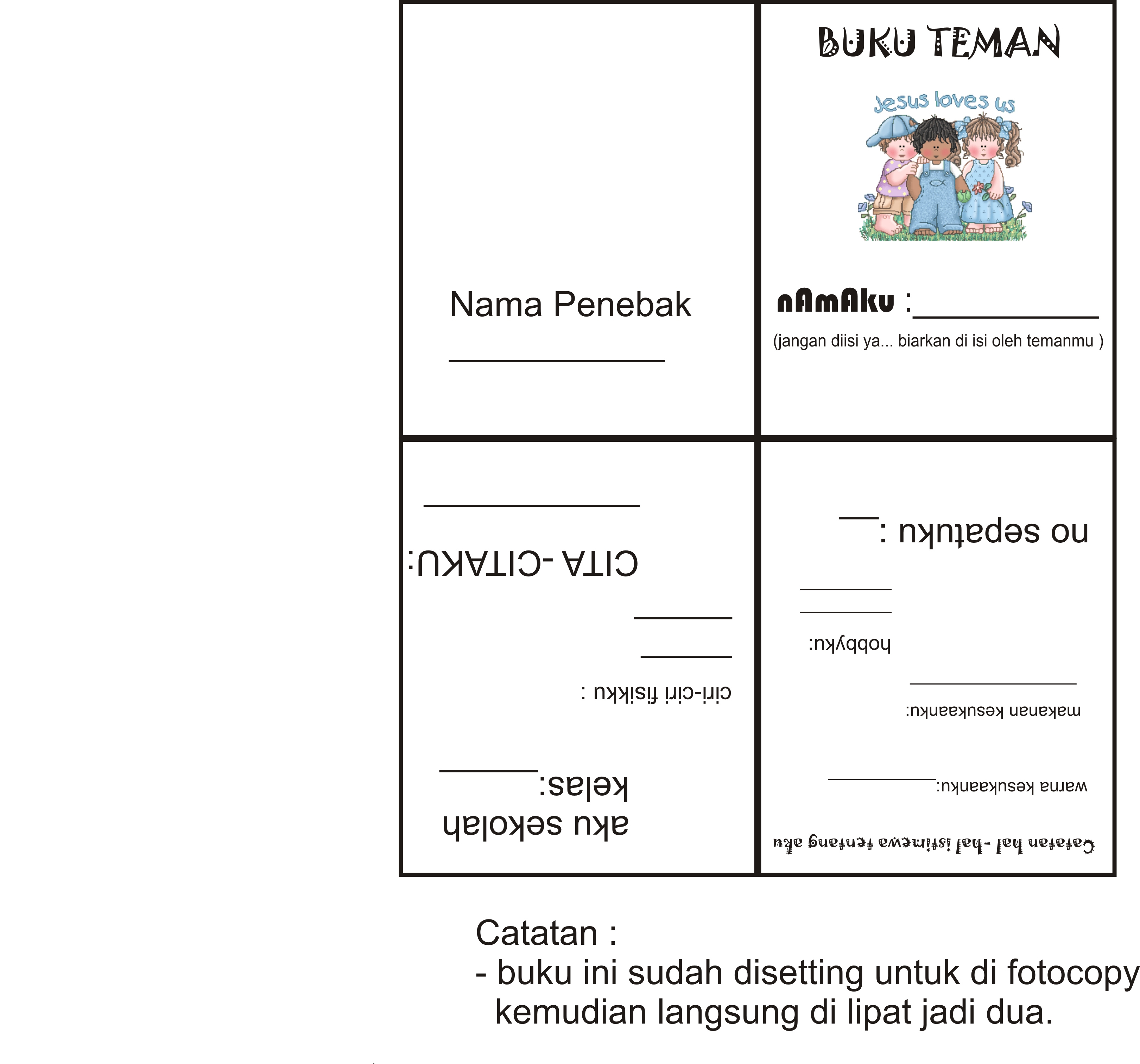 BUKU TEMAN DI BAWAH INI DIDESIGN OLEH IBU SUSAN MALINO DAN BAPAK PURWANTO, TERIMA KASIH ATAS DESIGNNYA DAPAT MEMBERKATI ANAK-ANAK DI INDONESIA.