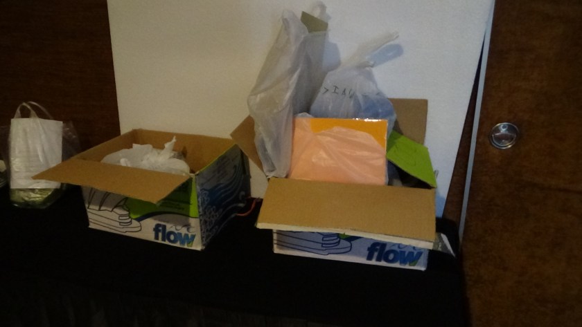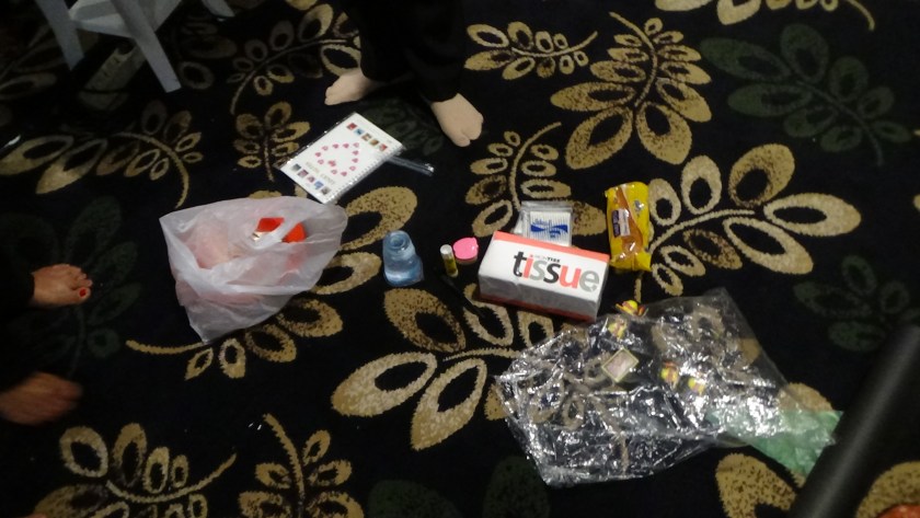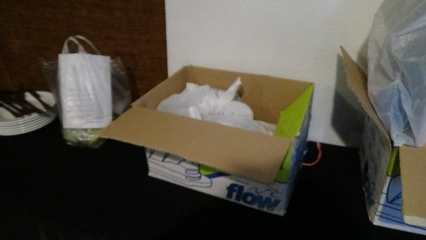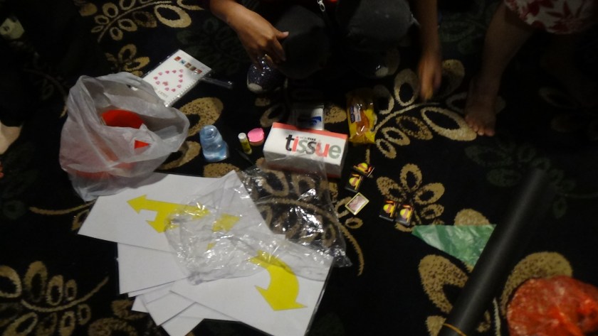 Tempat sampah ( usahakan baru dan beri tas plastik, semuanya warna merah) Tempat sampah bisa 1 atau 5 susun dalam formasi lima titik salib.